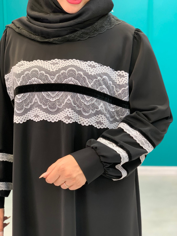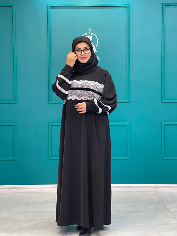 عبای روزمره با تور دانتل فرانسوی که رنگ تور طوسی روشن هست