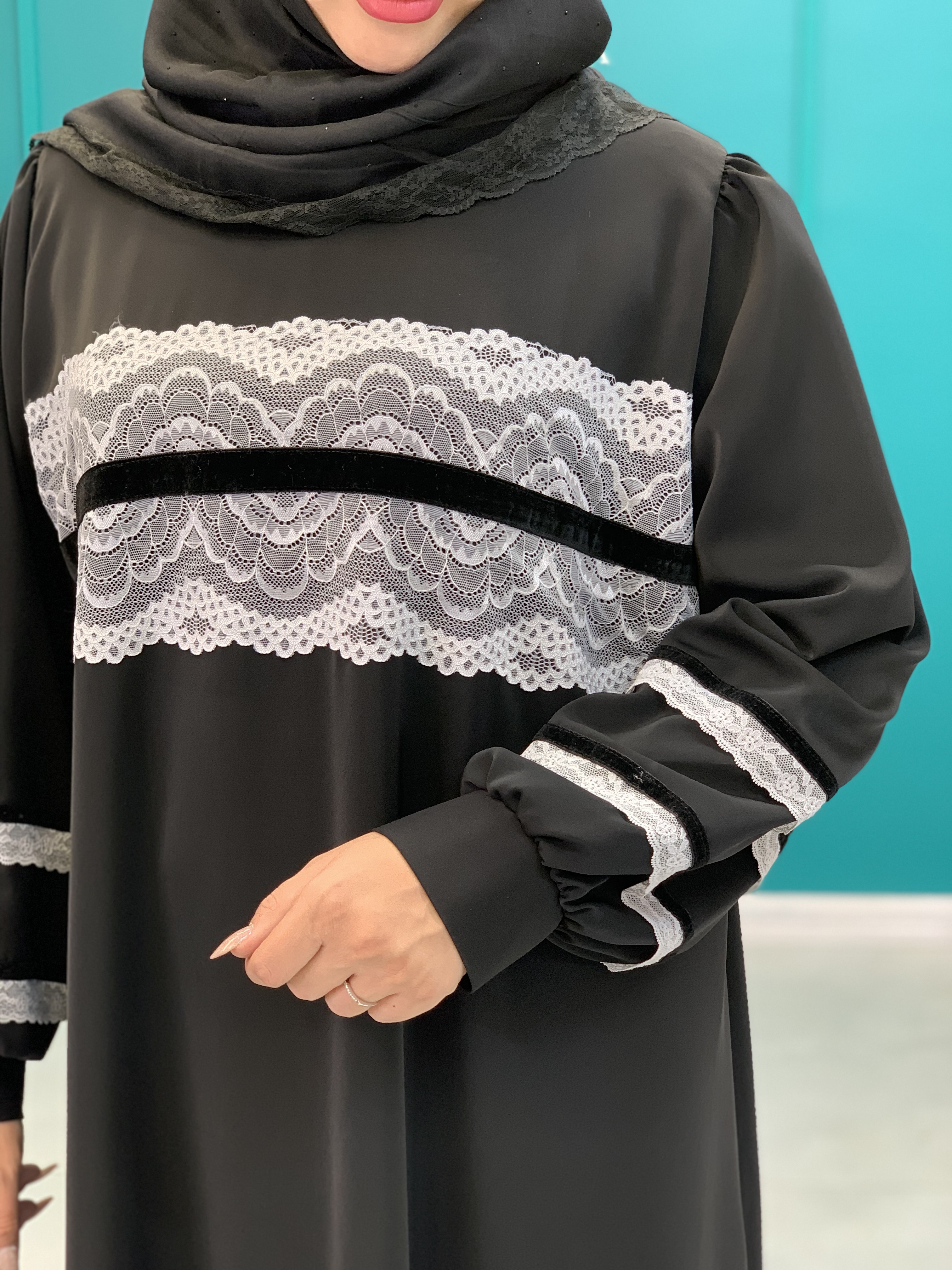 عبای روزمره با تور دانتل فرانسوی که رنگ تور طوسی روشن هست