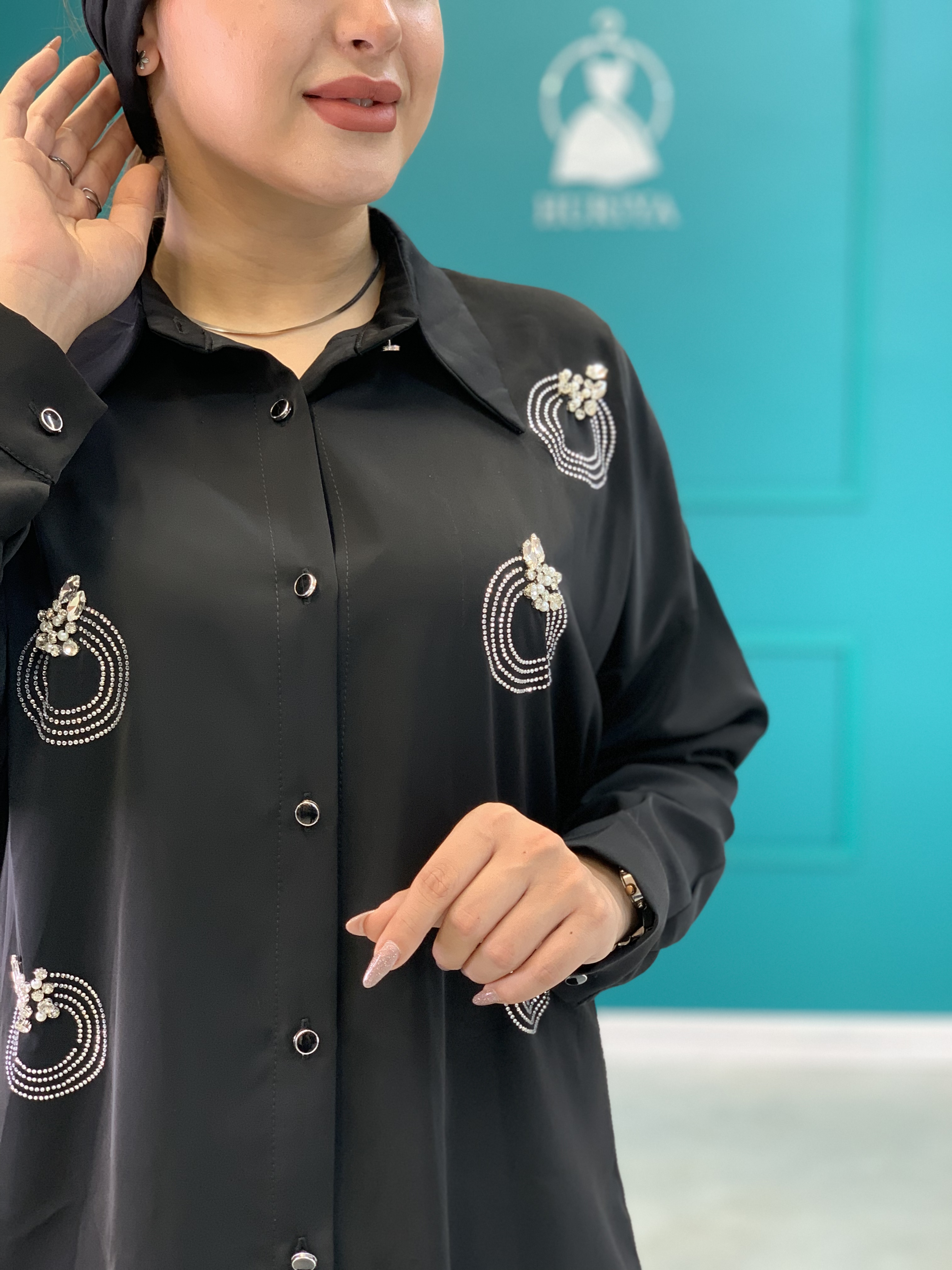شومیز مشکی مجلسی سنگدوزی شده بخاطر برش حلقه آستین ها که افتاده هست قواره کار رو آزاد میکنه و هر سایز چندتا سایز ساپورت میکنه جنس پارچه شومیز خیلی سبک و لخت و ریزشداره و کاملا مشکی