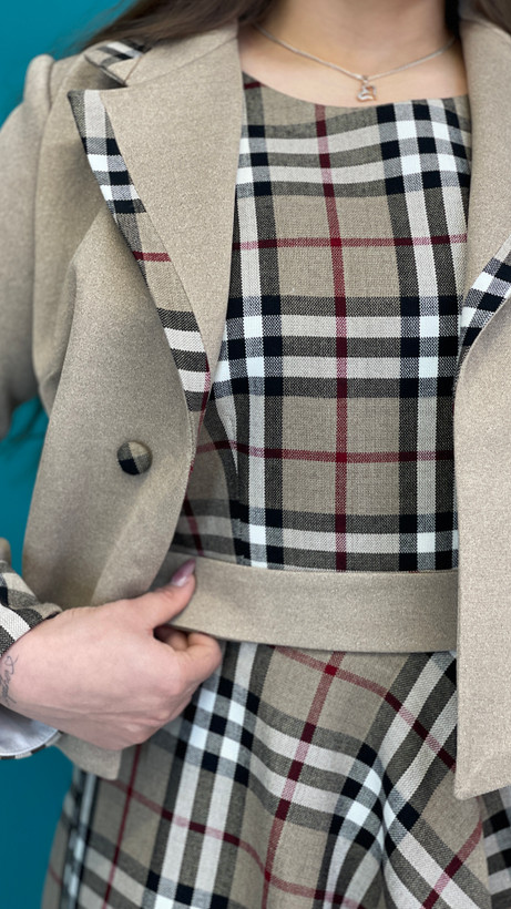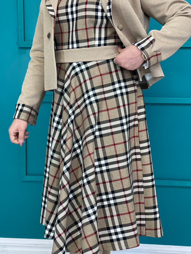 سارافون و کت پاییزه مدل چهارخونه باربری